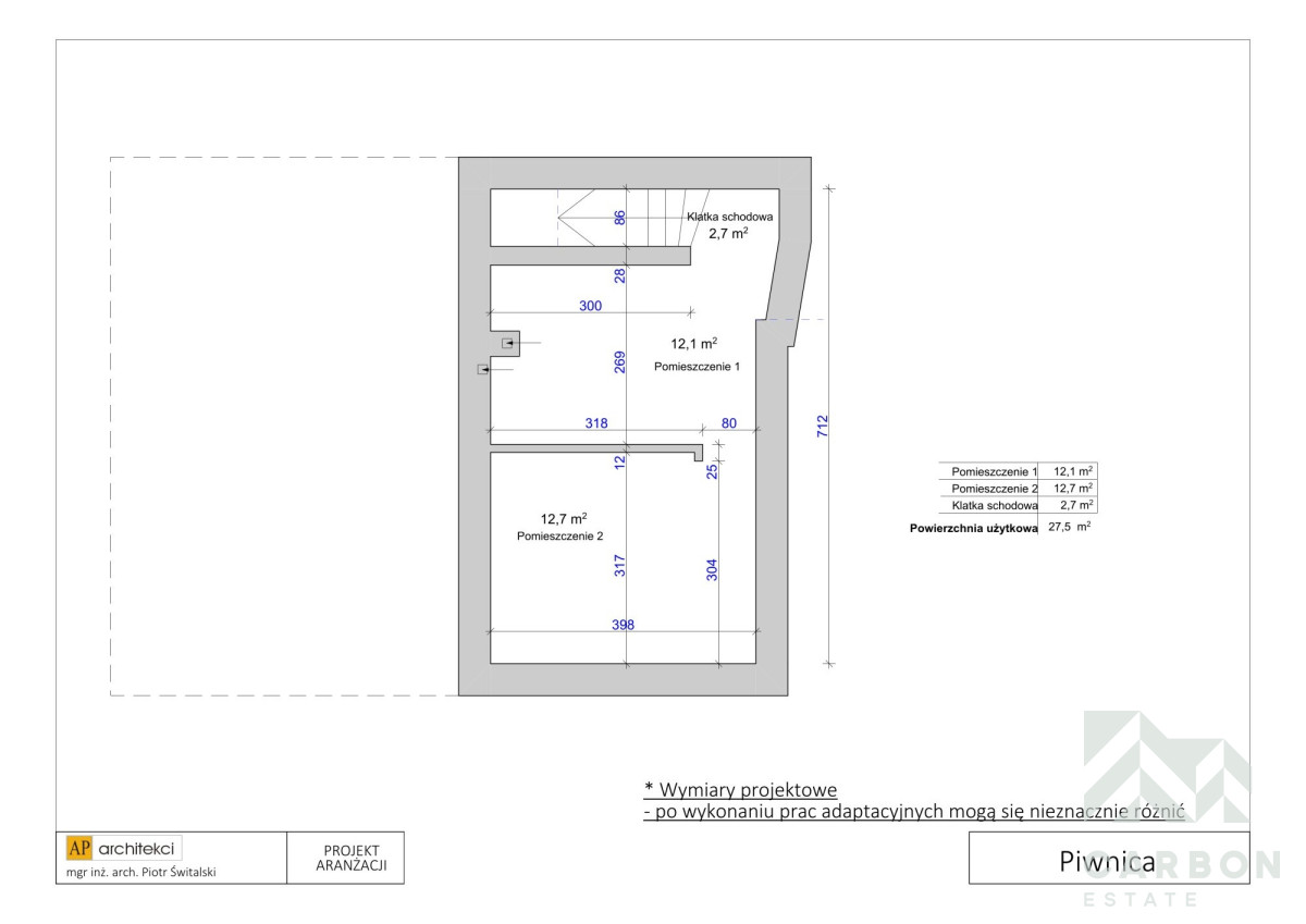 Piwnica: pogłębiona, prawie 2m wysokości, 27,5 m² przestrzeni