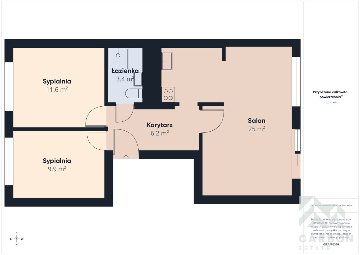 Powierzchnia ok. 55 m² obejmuje: