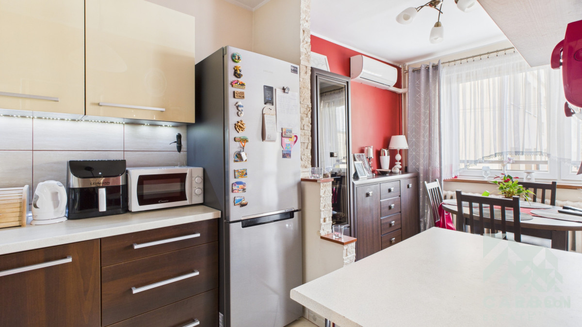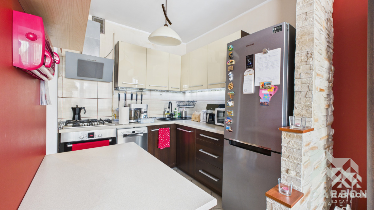 Kuchnia i łazienka są w dobrym stanie i nadają się do codziennego użytkowania, a całe wnętrze stanowi bardzo dobrą bazę do odświeżenia i dostosowania do własnych oczekiwań, bez konieczności przeprowadzania kosztownych prac od podstaw.