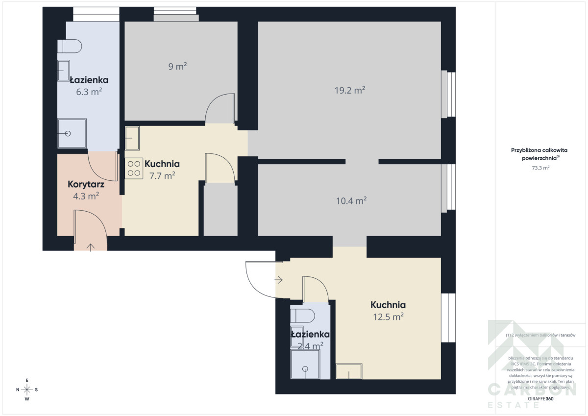 Możliwość podziału na dwa niezależne mieszkania - jedno 2-pokojowe oraz jedną kawalerkę.